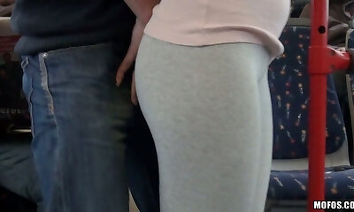 Horny huge-chested girlie gave hr hungering dawg deep throat blowjob right in bus