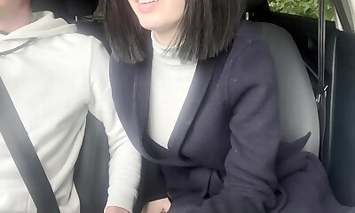 Cab driver plays with immense milkings of an amateur cock-sucking MILF while driving her home