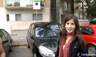Nasty brunette teen bangs big cock in car