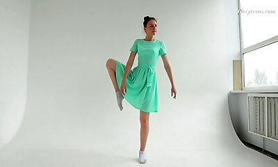 Slender ballerina Jati takes off her clothes and shows off her slit