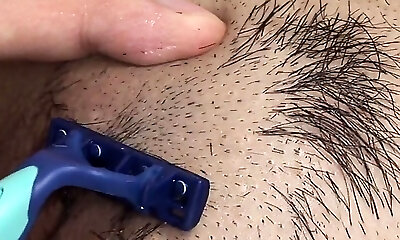Please help me shave my bushes. Shaving wife's pussy in POV. Home amateur video.
