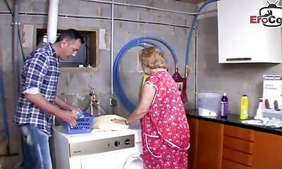 German Ugly mature mom housewife seduces her step son